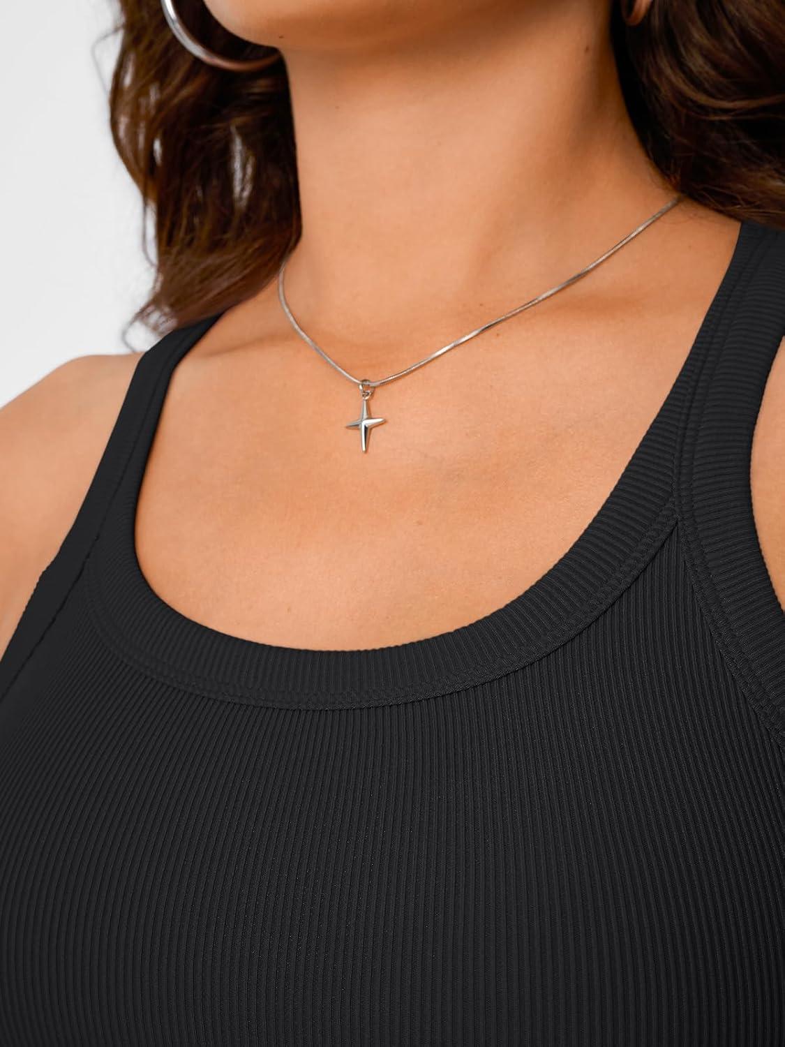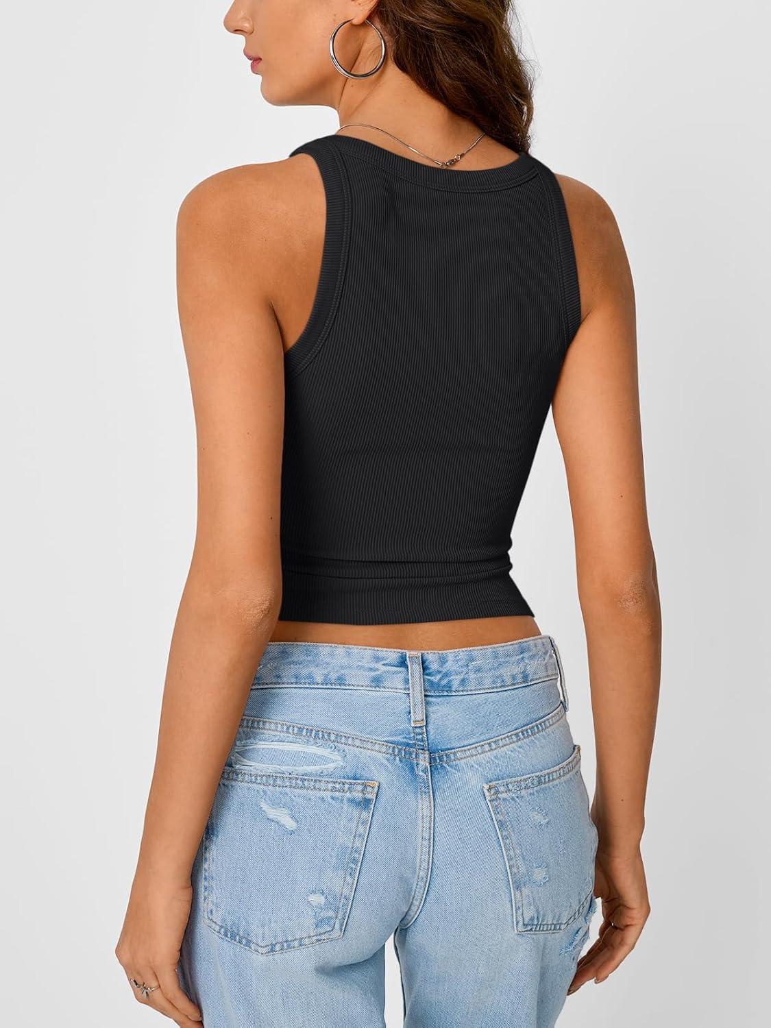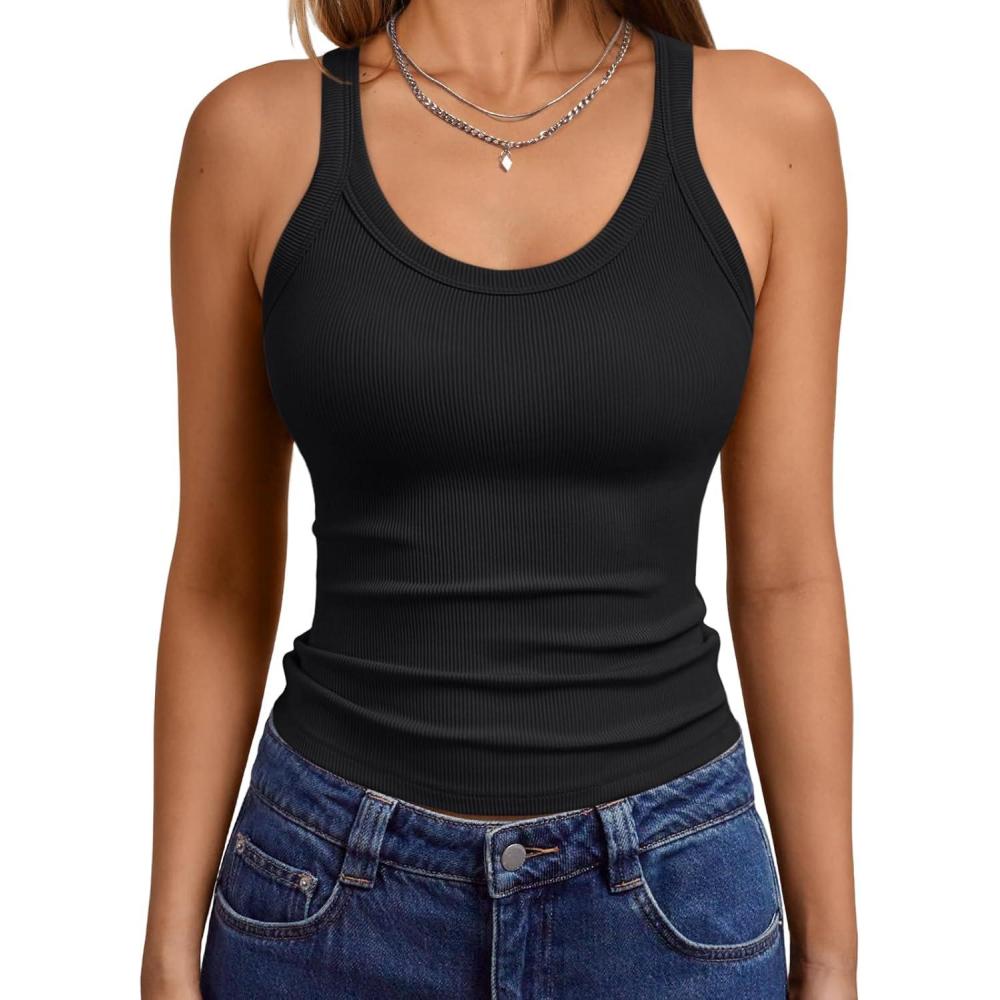Trendy Queen Womens Tank Tops Crop Camisole Summer Fashion Sleeveless Ribbed Workout Basic Going Out Gym Spring Clothes 2025(Black)