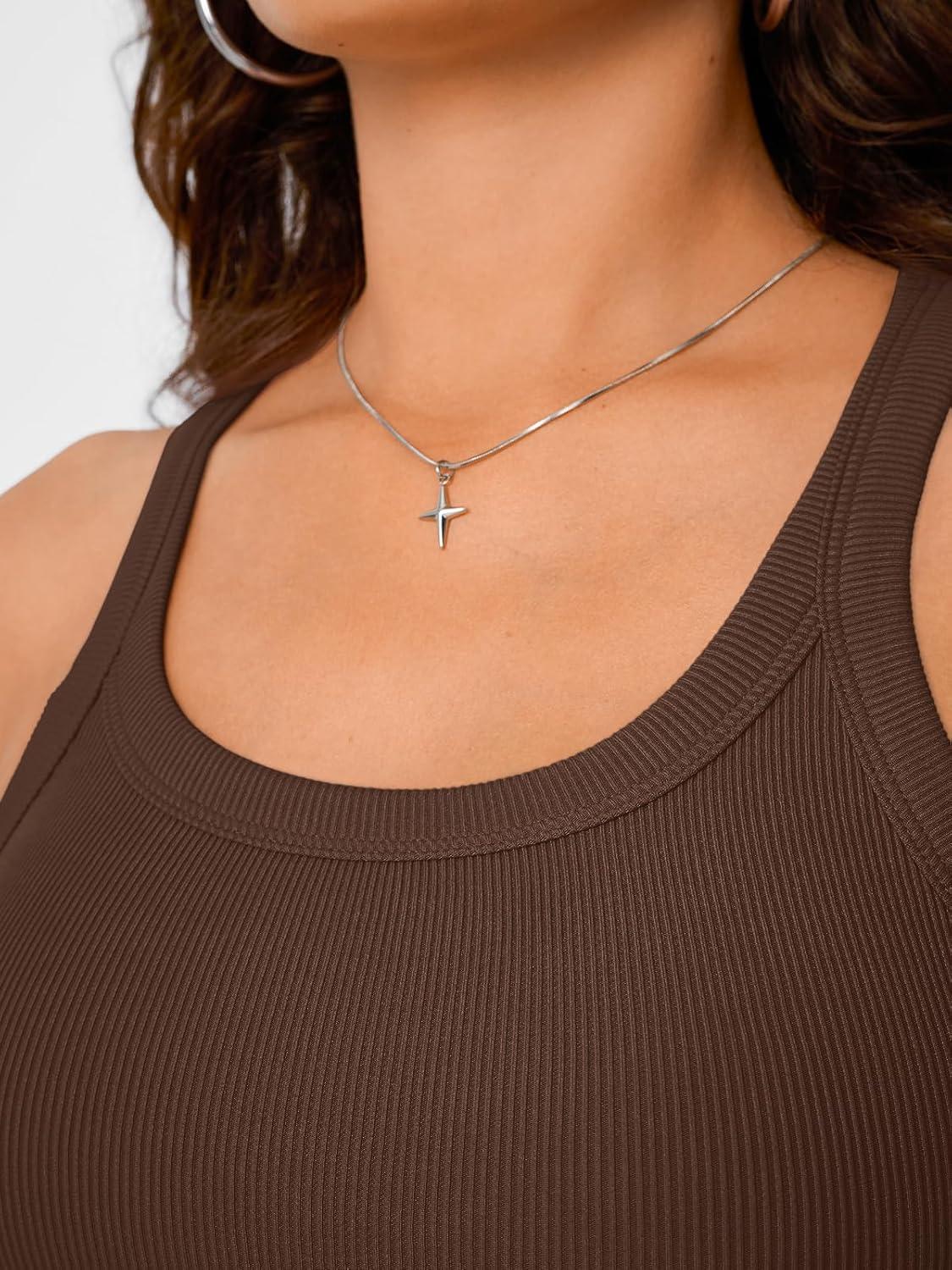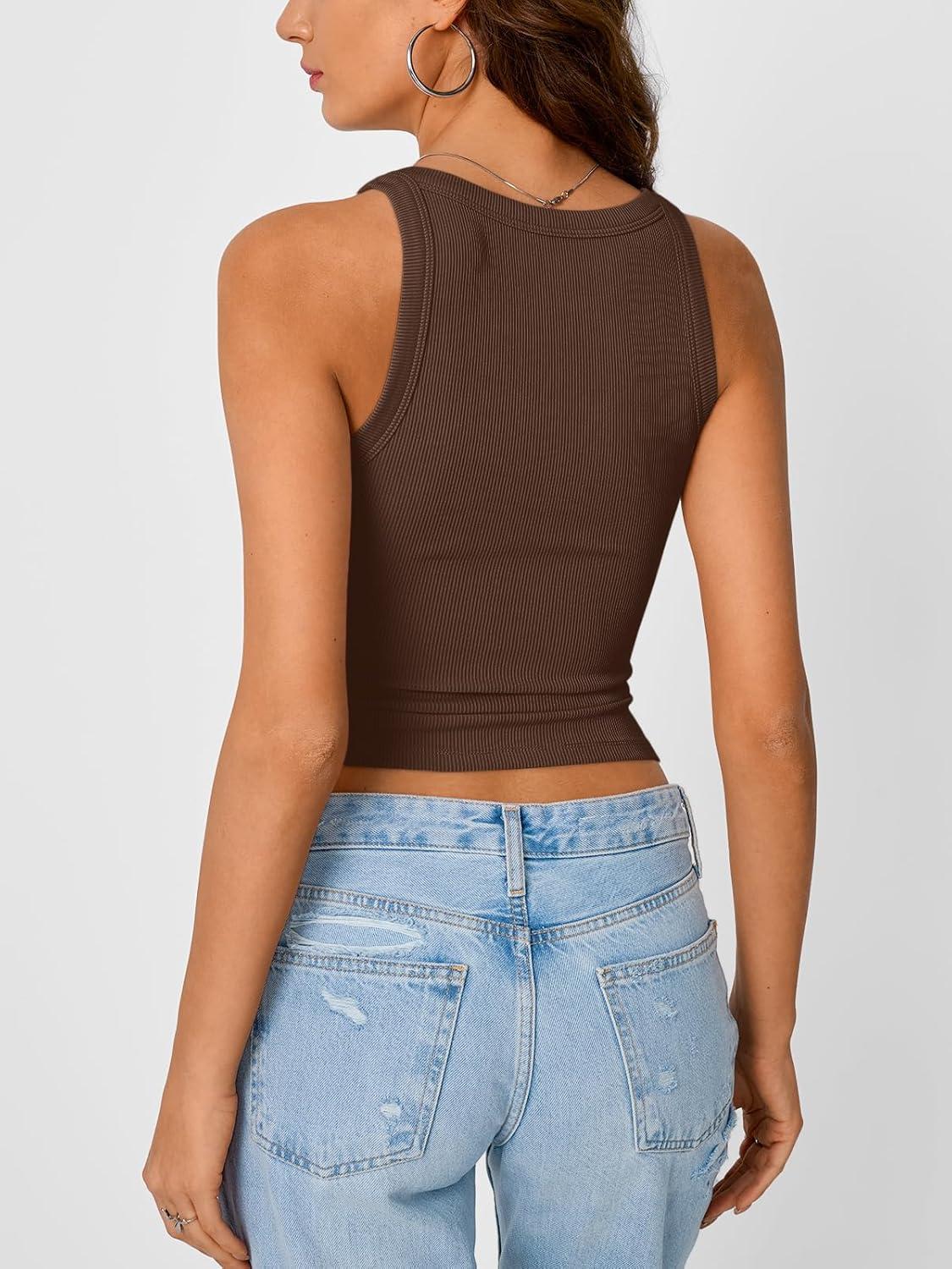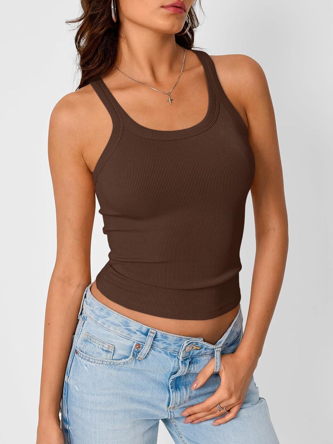 Trendy Queen Womens Tank Tops Crop Camisole Summer Fashion Sleeveless Ribbed Workout Basic Going Out Gym Spring Clothes 2025(Brown)