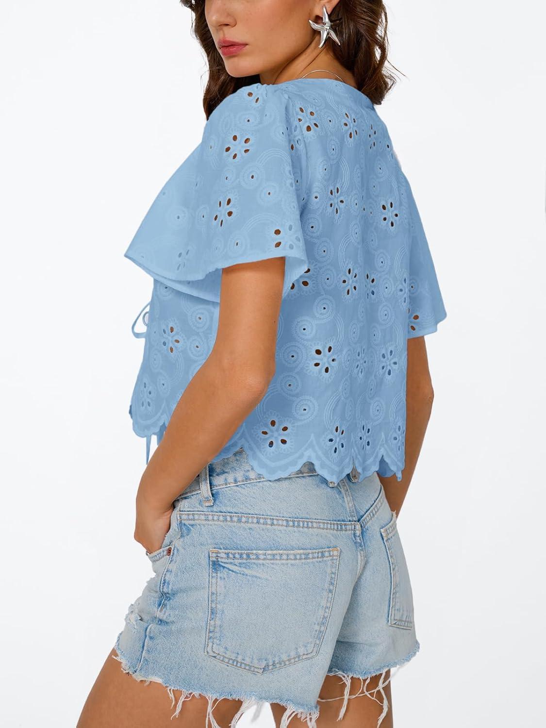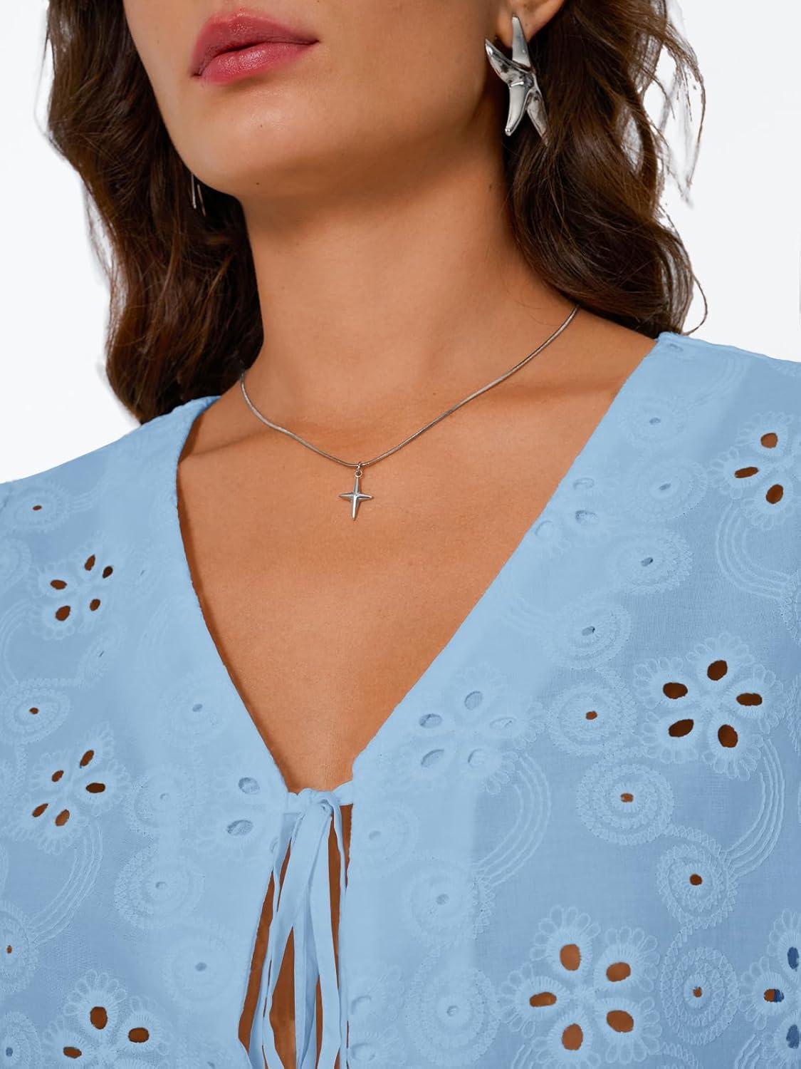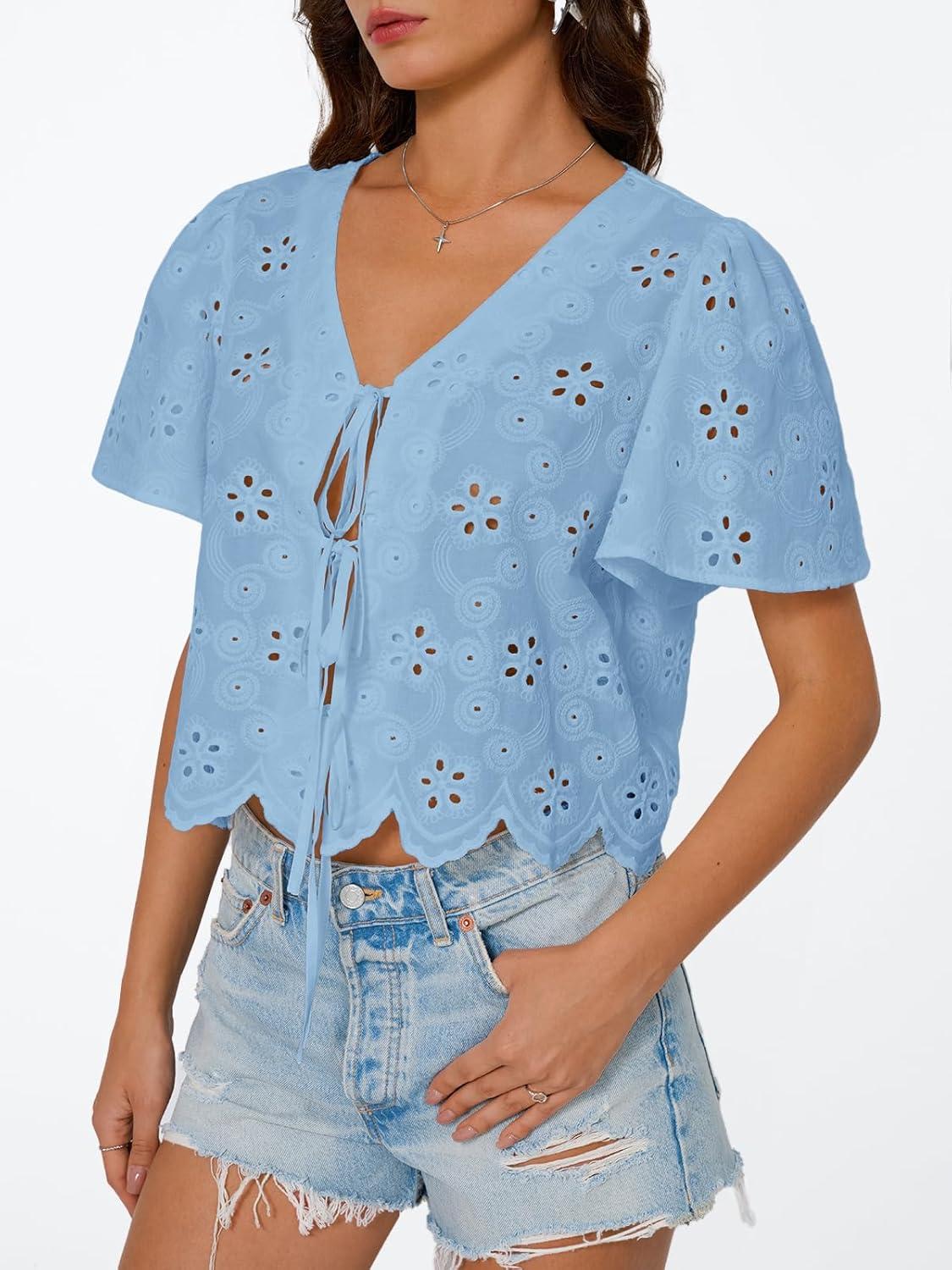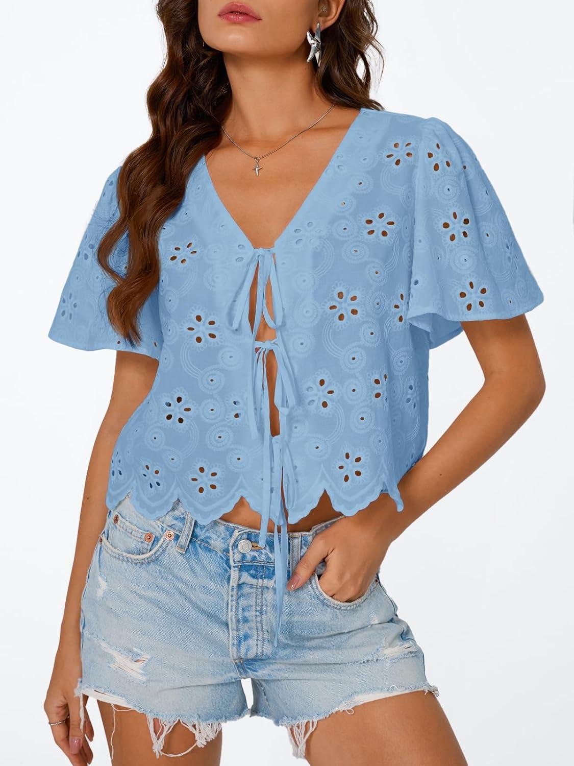 Our clearance section features the best deals on Trendy Queen Womens Tie Front Tops Summer Beach Vacation 2025 Fashion Outfits Loose Fit Blouses Eyelet Embroidered Clothes(Lightblue) and accessories. Check it out now!