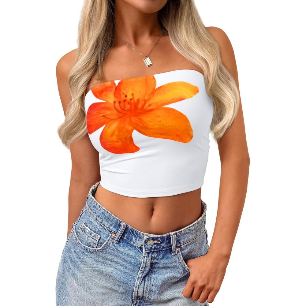 Trendy Queen Womens Tube Tops Going Out Summer Y2k Bandeau Trendy Crop Sleeveless Strapless Cute Teens 2025 Corset Floral(Orange Flower)