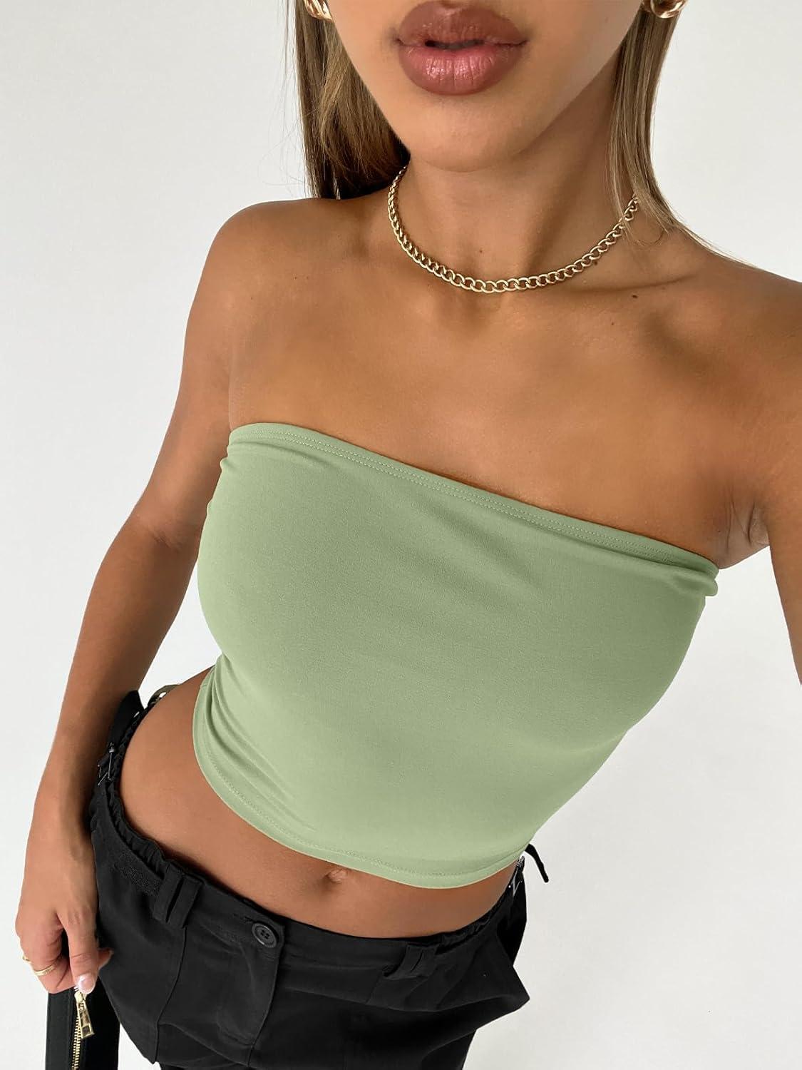 Trendy Queen Womens Tube Tops Strapless Crop Tops Basic Backless Sleeveless Bandeau Going Out Cute 2025 Summer Outfits(Light Green)