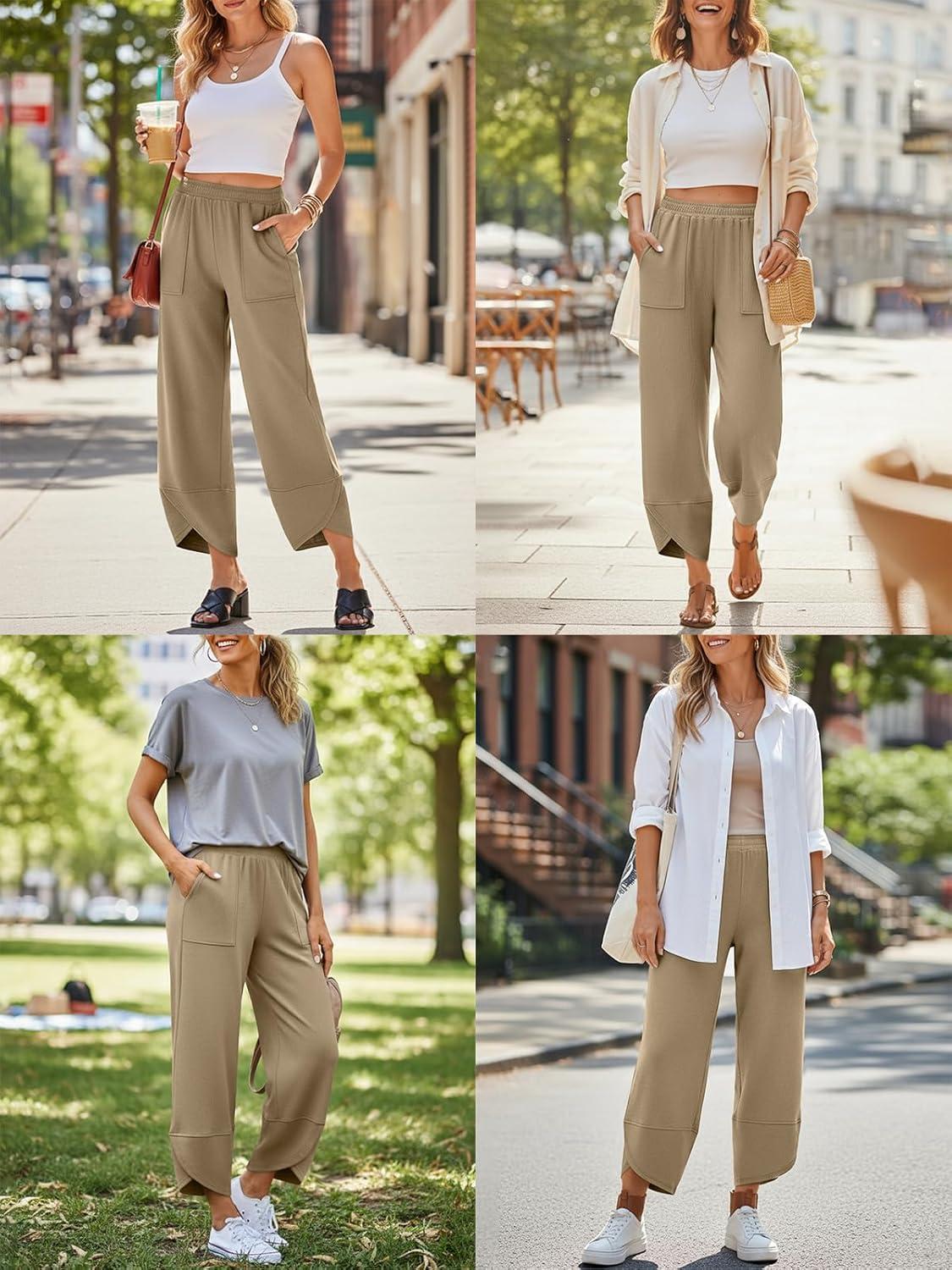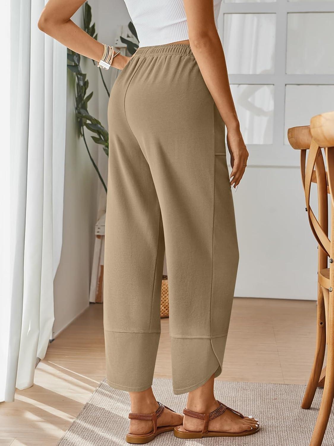 Trendy Queen Women’s Wide Leg Pants Boho Summer Capri Palazzo Harem Casual Barrel Sweatpants Baggy Slacks with Pockets(Khaki)