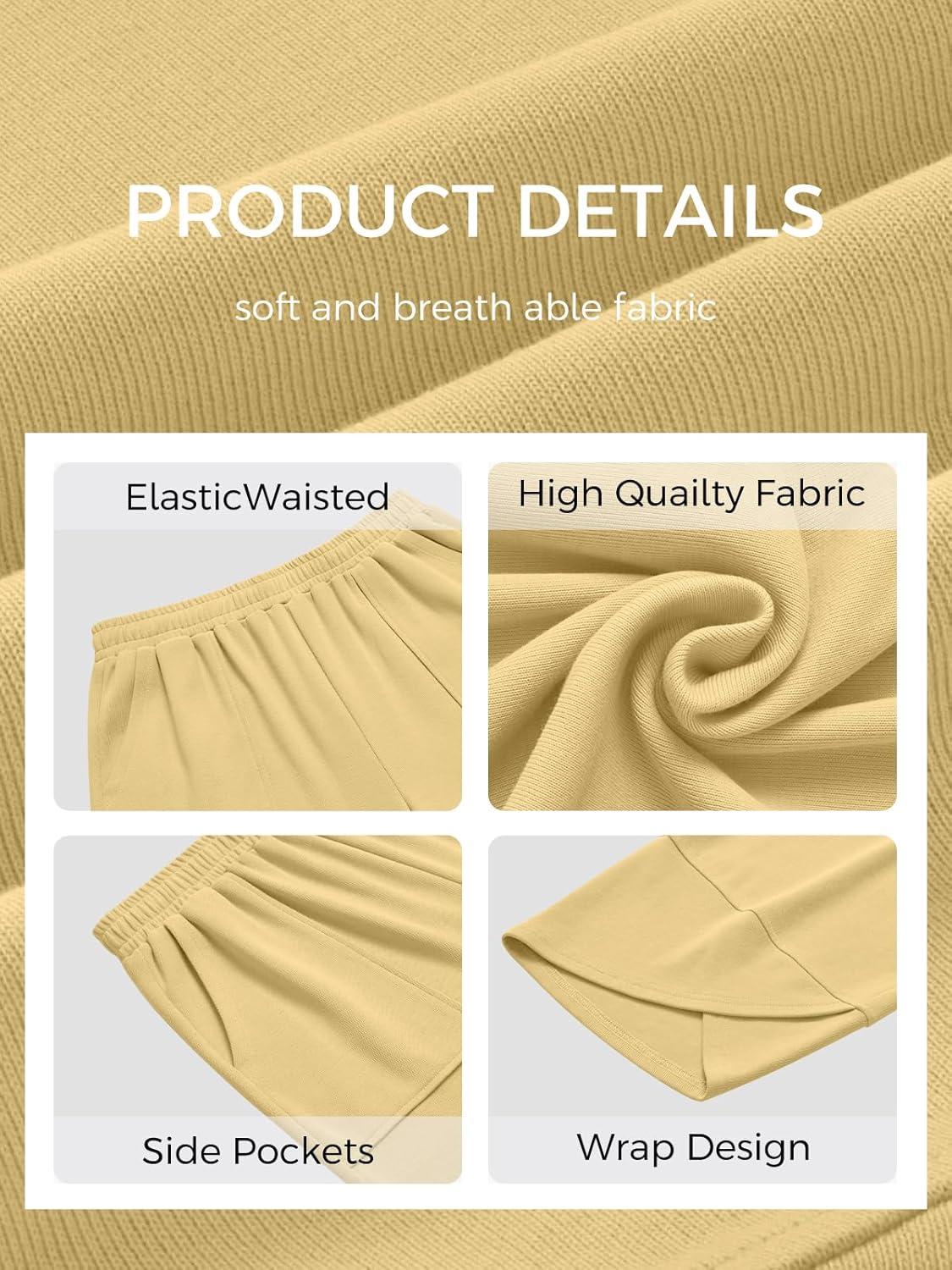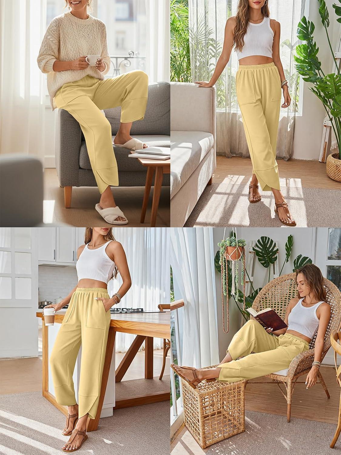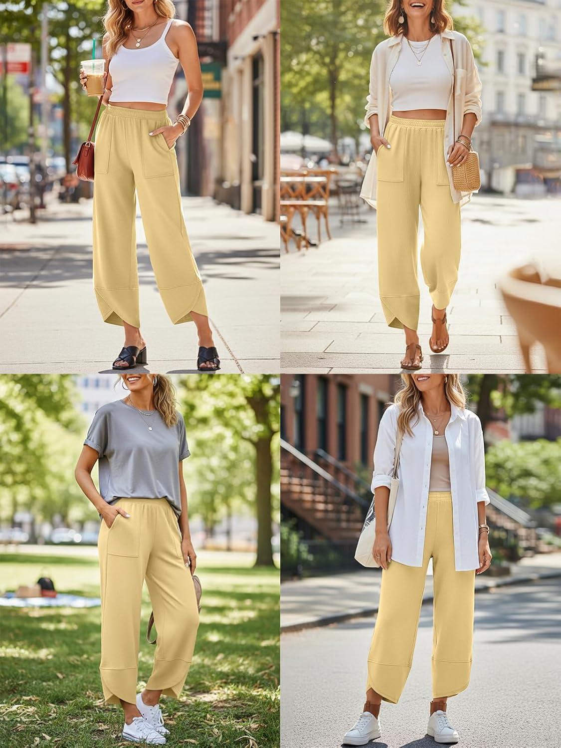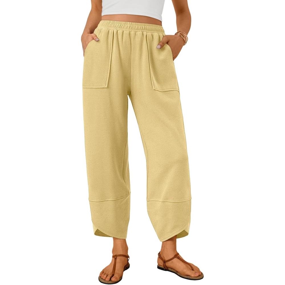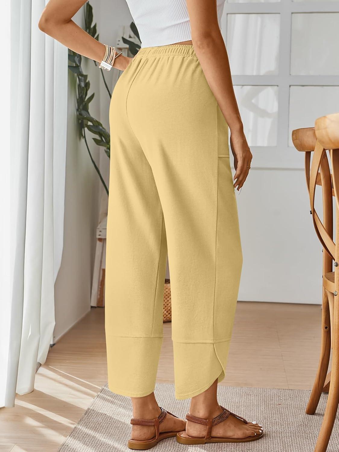 Trendy Queen Women’s Wide Leg Pants Boho Summer Capri Palazzo Harem Casual Barrel Sweatpants Baggy Slacks with Pockets(Mustard)