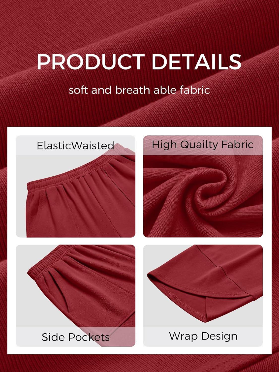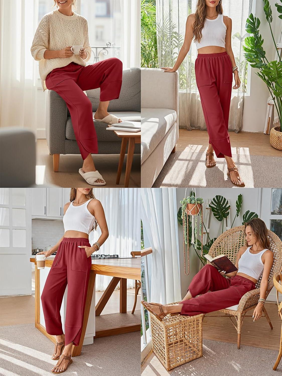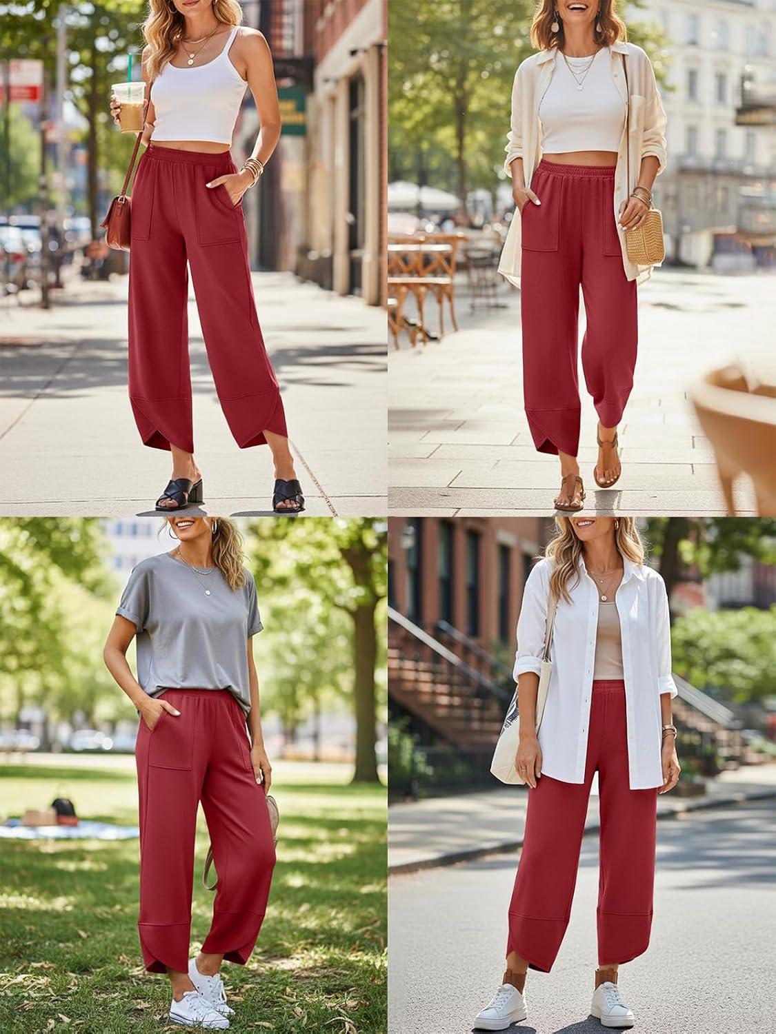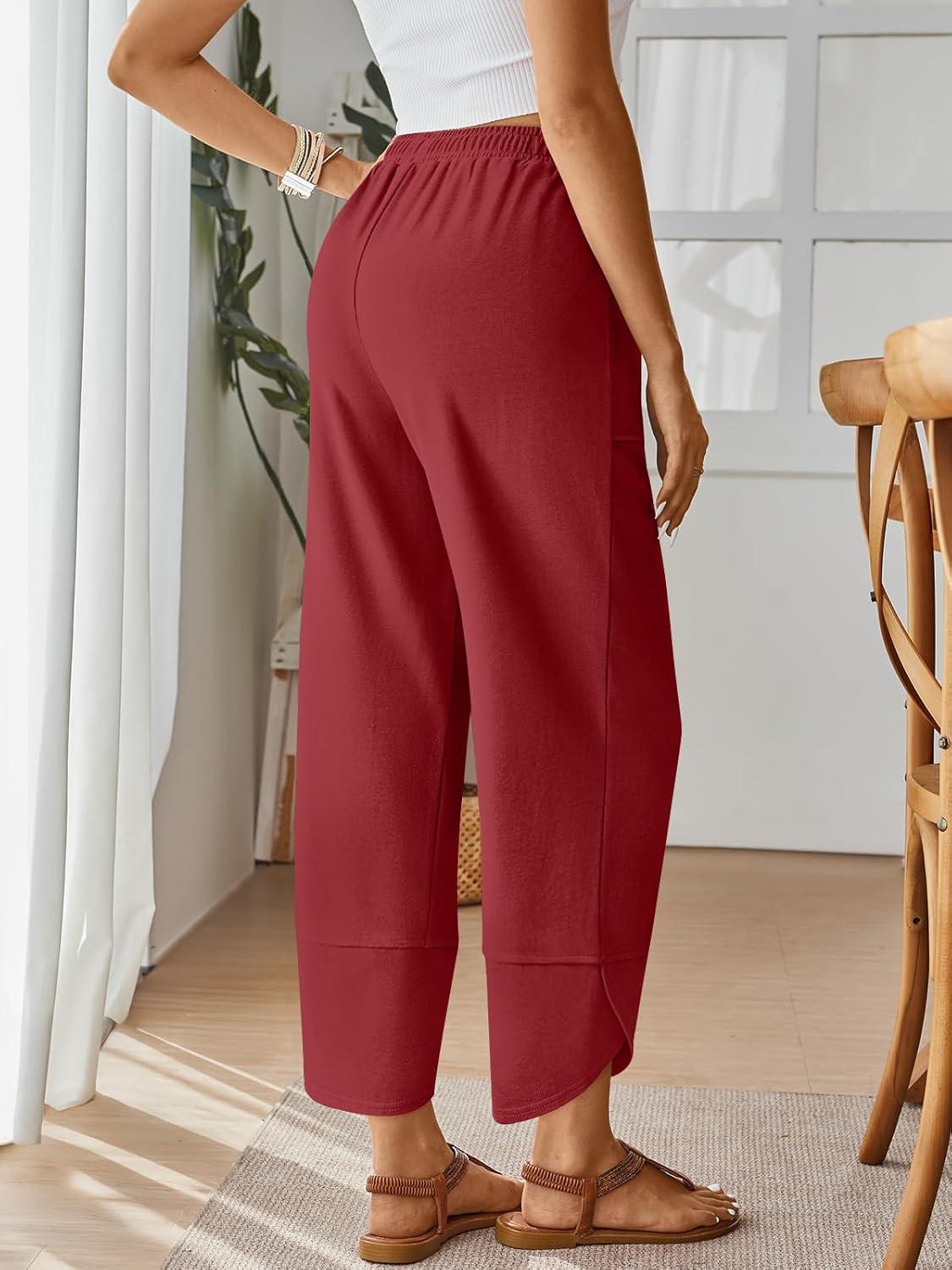 Trendy Queen Women’s Wide Leg Pants Boho Summer Capri Palazzo Harem Casual Barrel Sweatpants Baggy Slacks with Pockets(Red)
