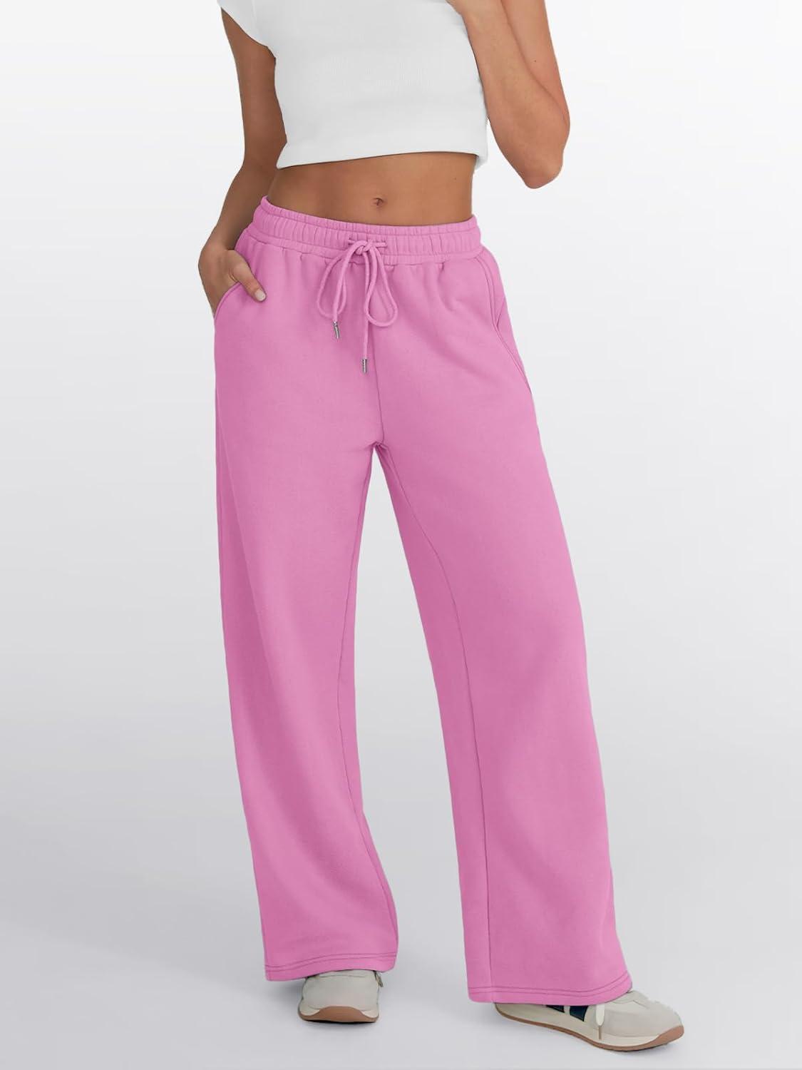 Trendy Queen Womens Wide Leg Sweatpants Baggy Lounge Travel Pants Fall Fashion Outfits 2025 Winter Joggers Clothes(Pink)