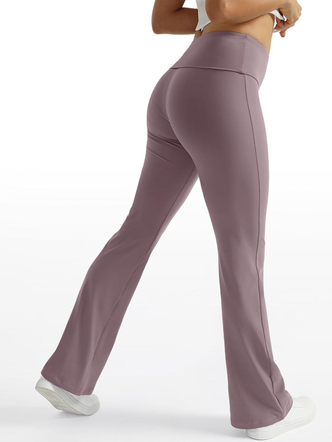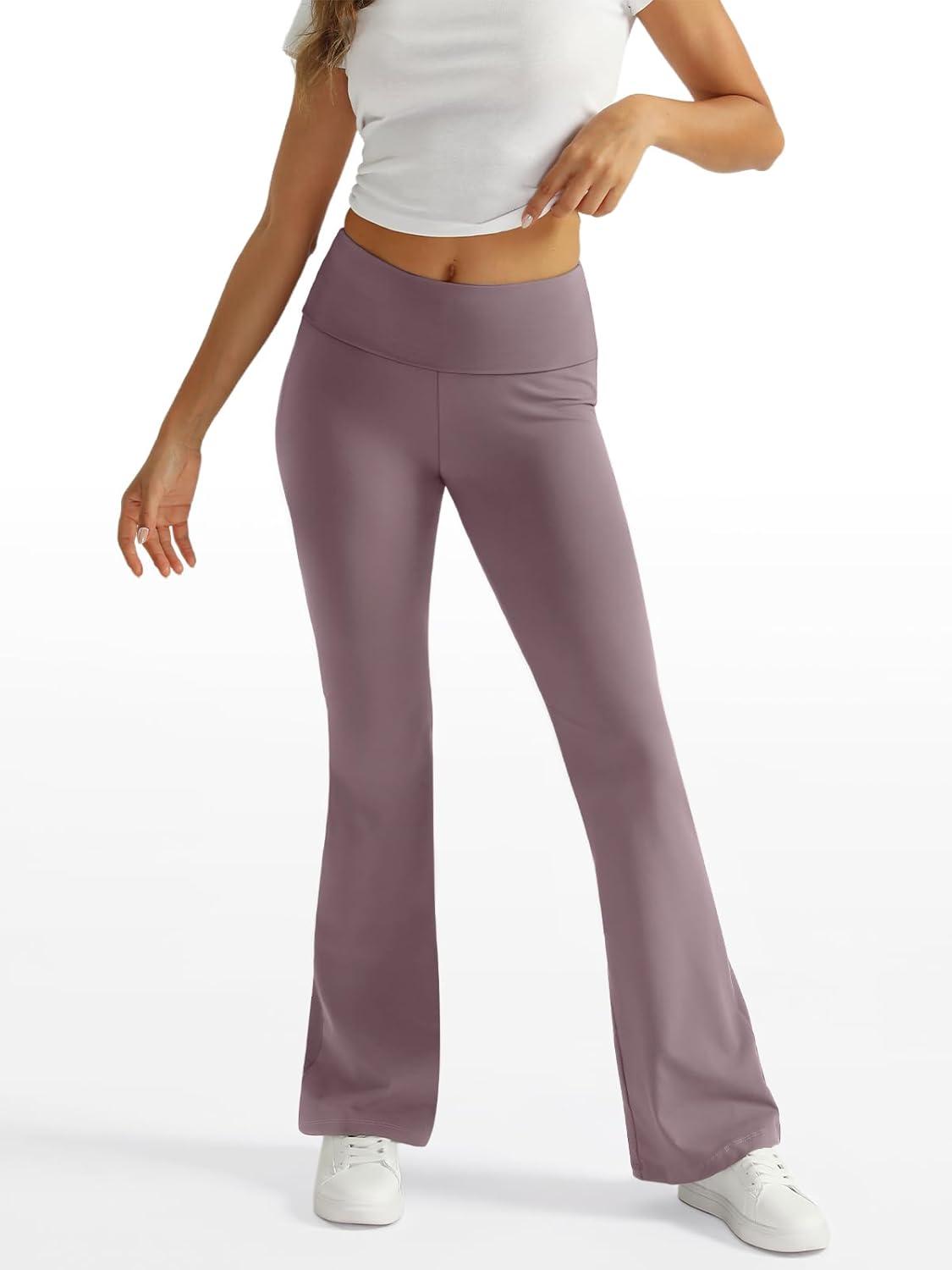 Trendy Queen Women’s Wide Leg Yoga Pants Bootcut Workout Flare Leggings Trendy High Waisted Fold Over 2025 Fall Outfits(Purple)
