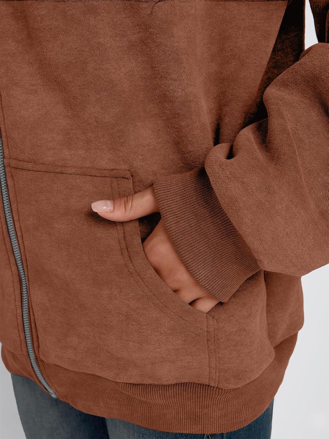 Trendy Queen Zip Up Hoodies for Women Acid Wash Oversized Sweatshirt Fall Fashion Jacket Cute Y2k Winter teen girls pullover(Coffee)