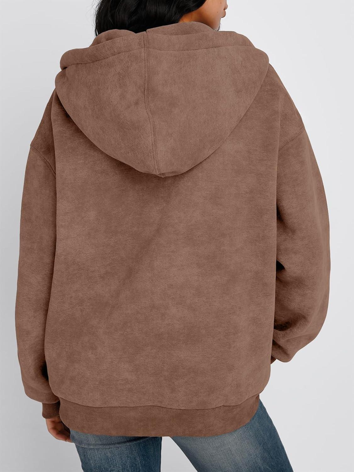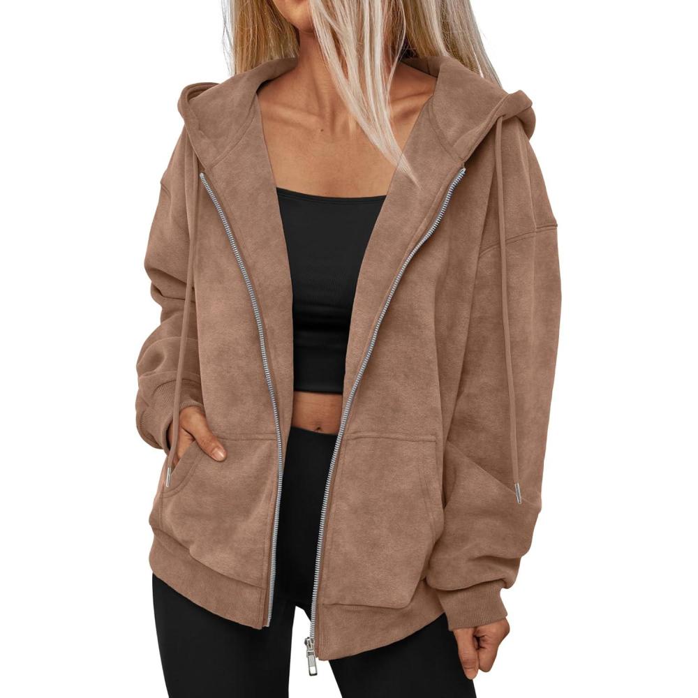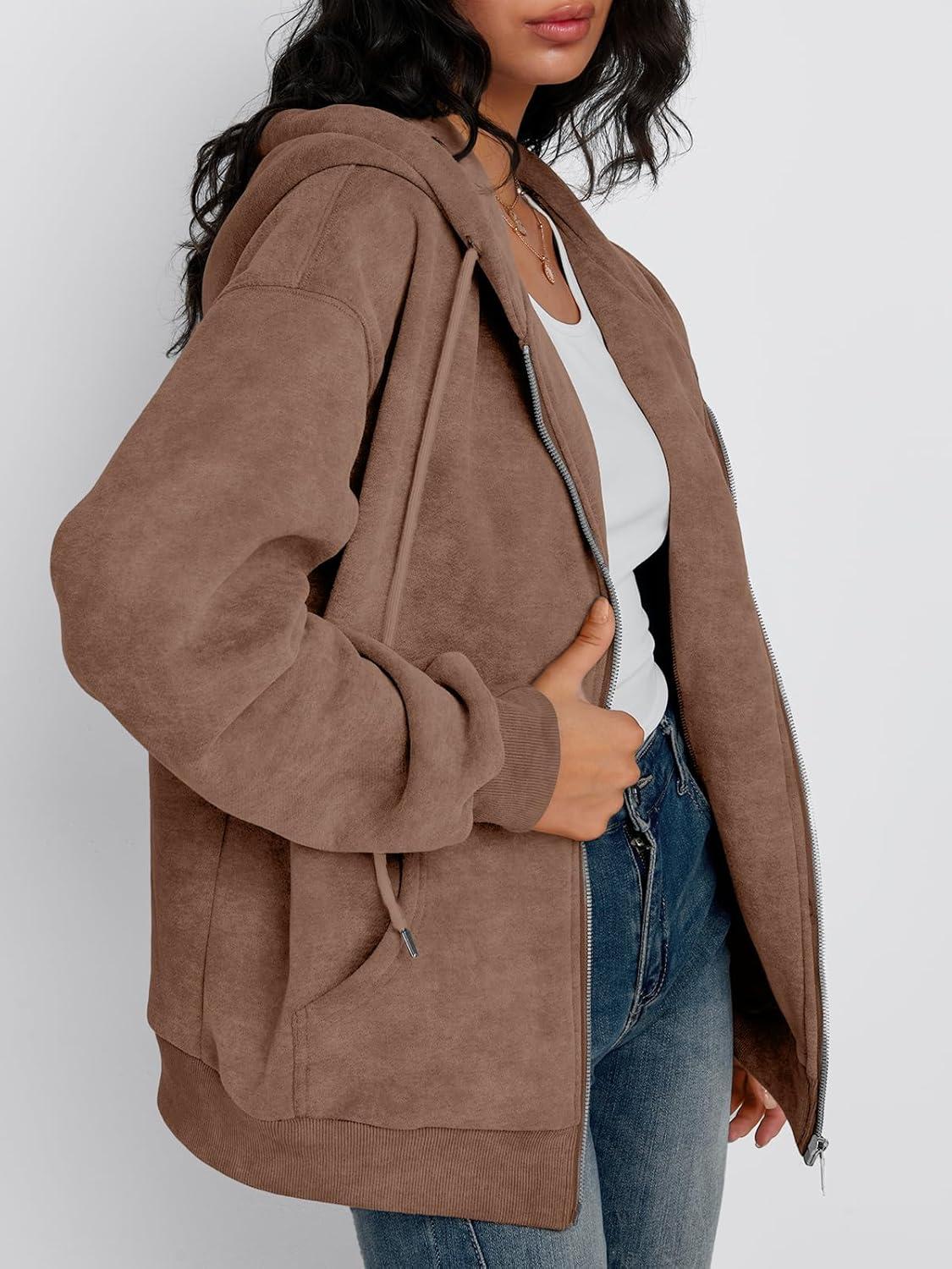 Trendy Queen Zip Up Hoodies for Women Acid Wash Oversized Sweatshirt Fall Fashion Jacket Cute Y2k Winter teen girls pullover(Coffee)