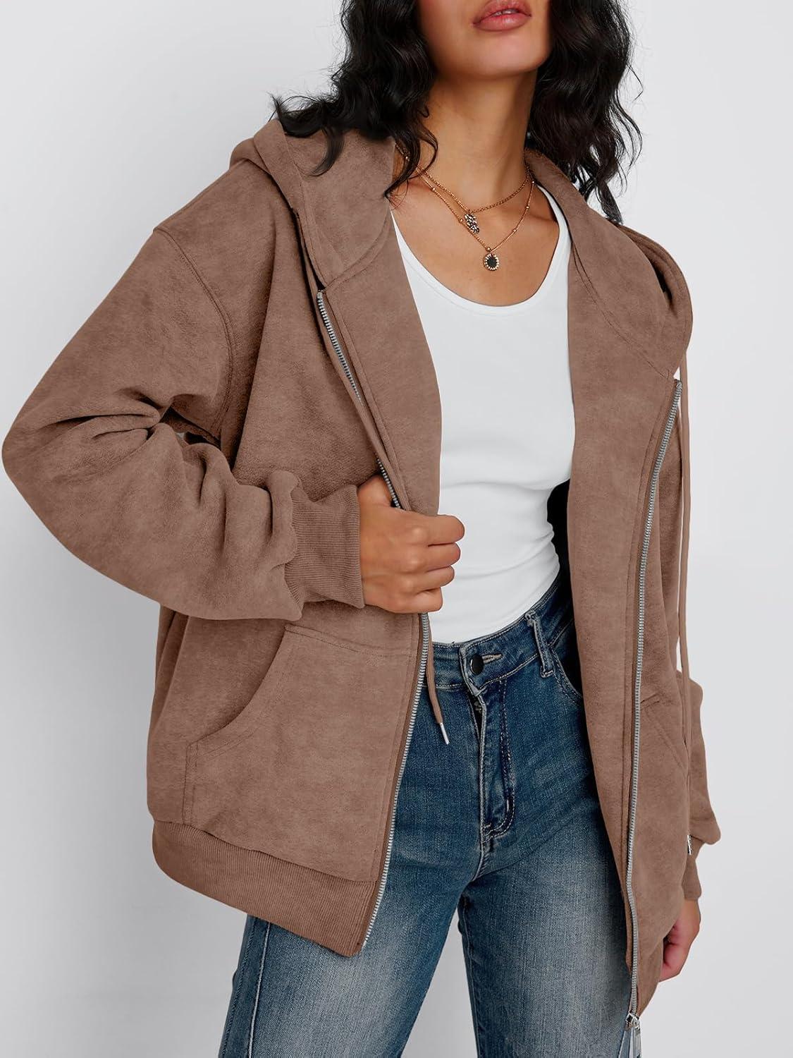 Trendy Queen Zip Up Hoodies for Women Acid Wash Oversized Sweatshirt Fall Fashion Jacket Cute Y2k Winter teen girls pullover(Brown)