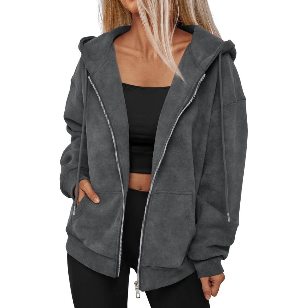 Trendy Queen Zip Up Hoodies for Women Acid Wash Oversized Sweatshirt Fall Fashion Jacket Cute Y2k Winter teen girls pullover(Grey)