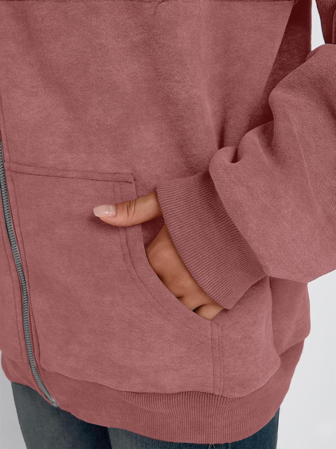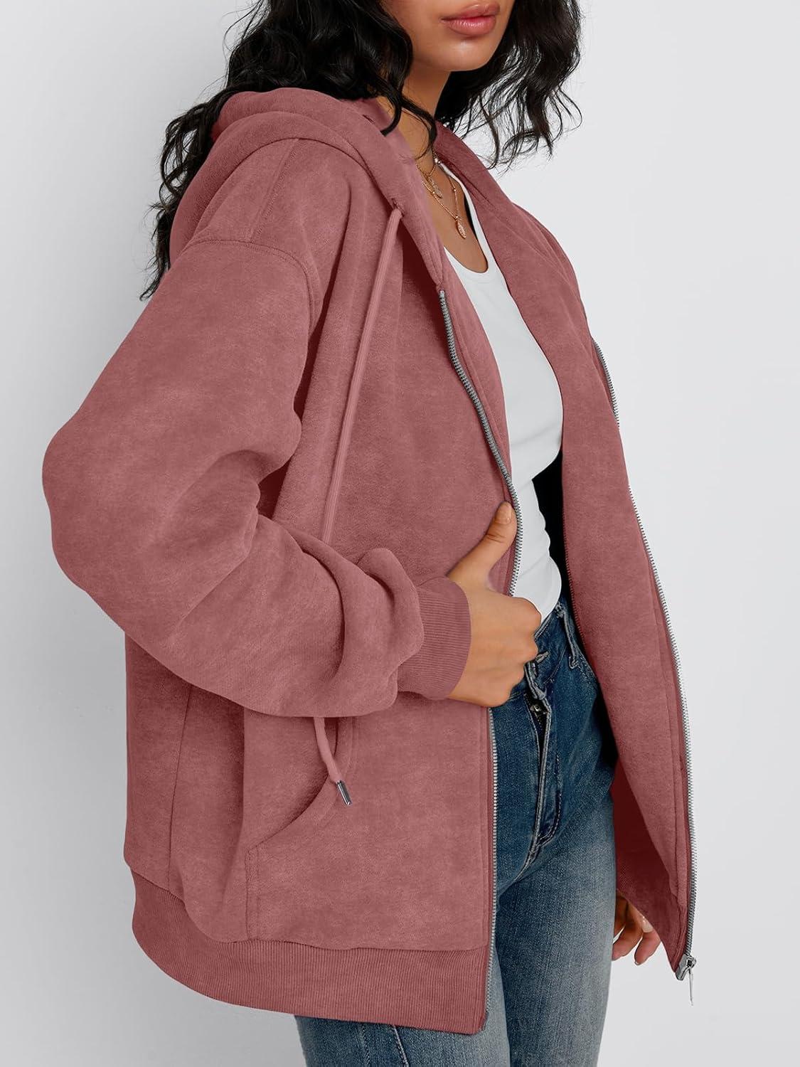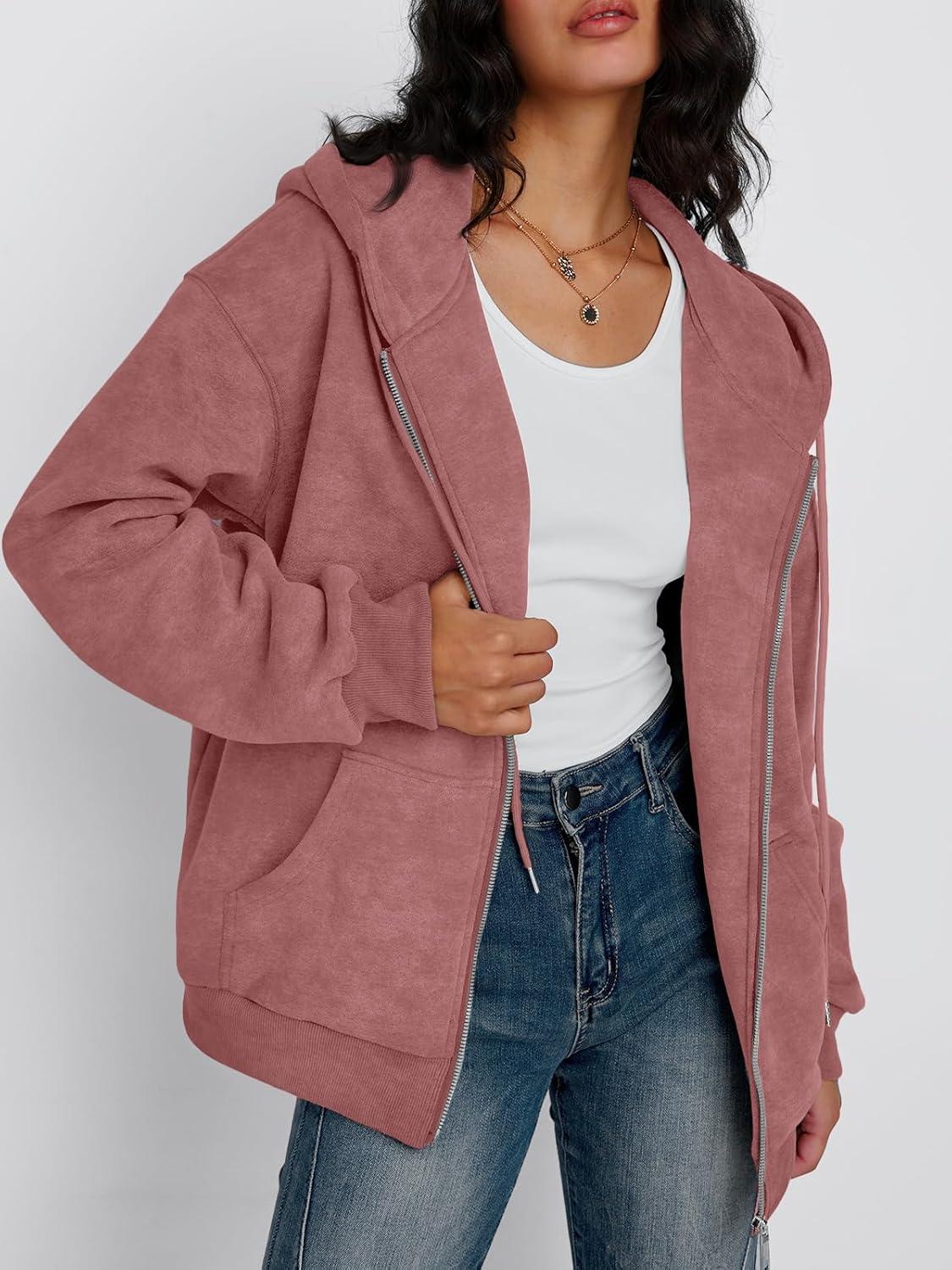 Trendy Queen Zip Up Hoodies for Women Acid Wash Oversized Sweatshirt Fall Fashion Jacket Cute Y2k Winter teen girls pullover(Pink)