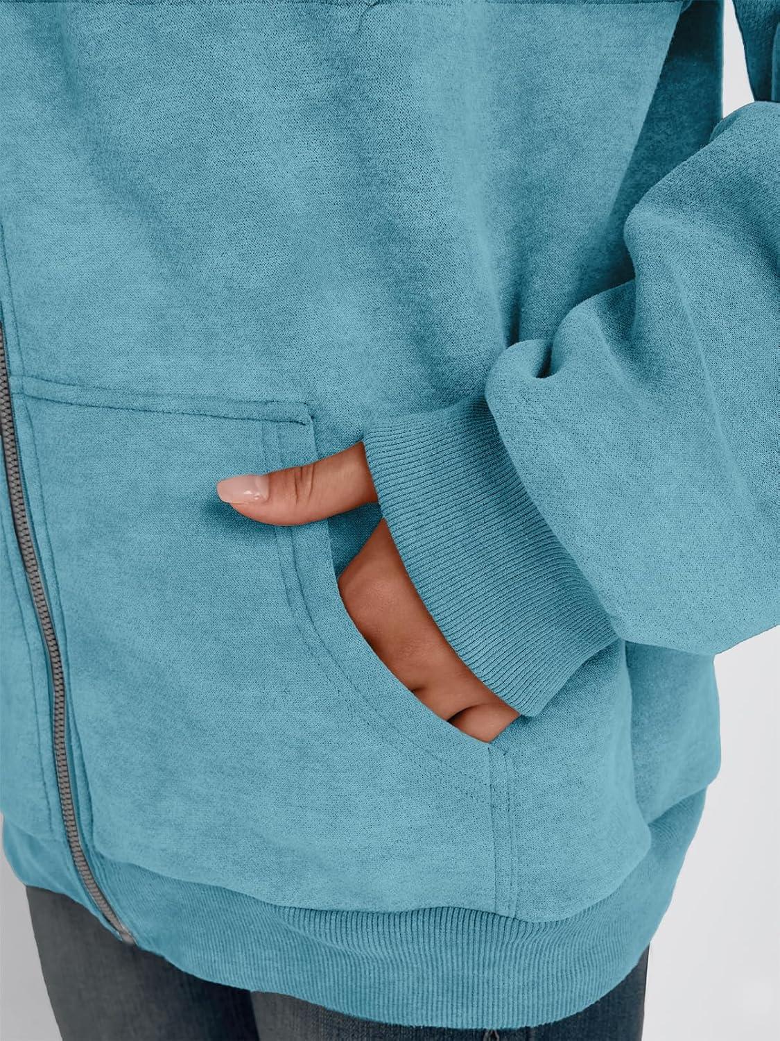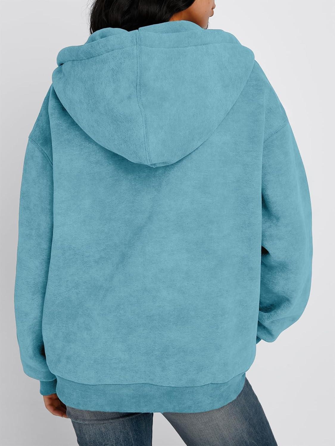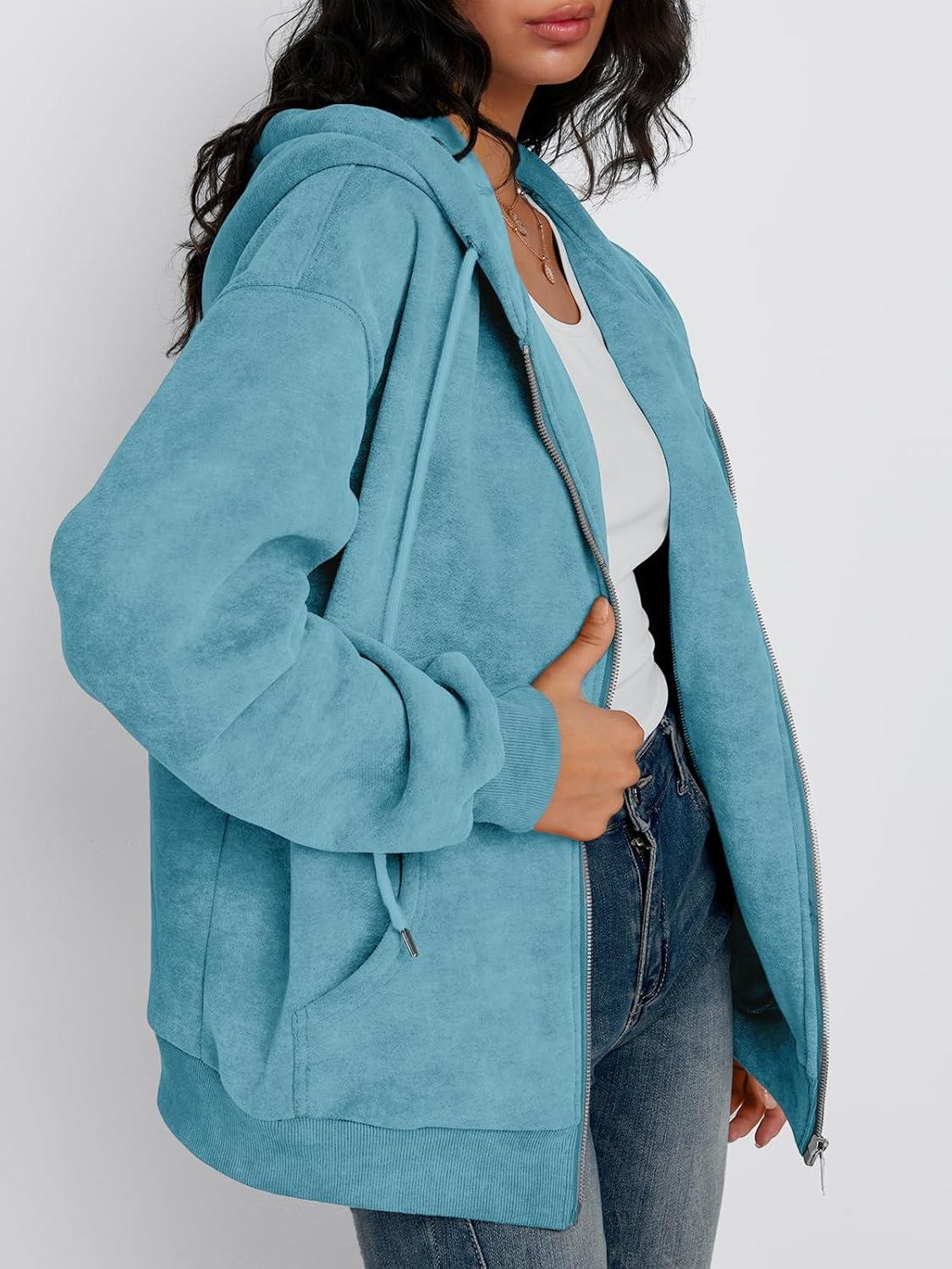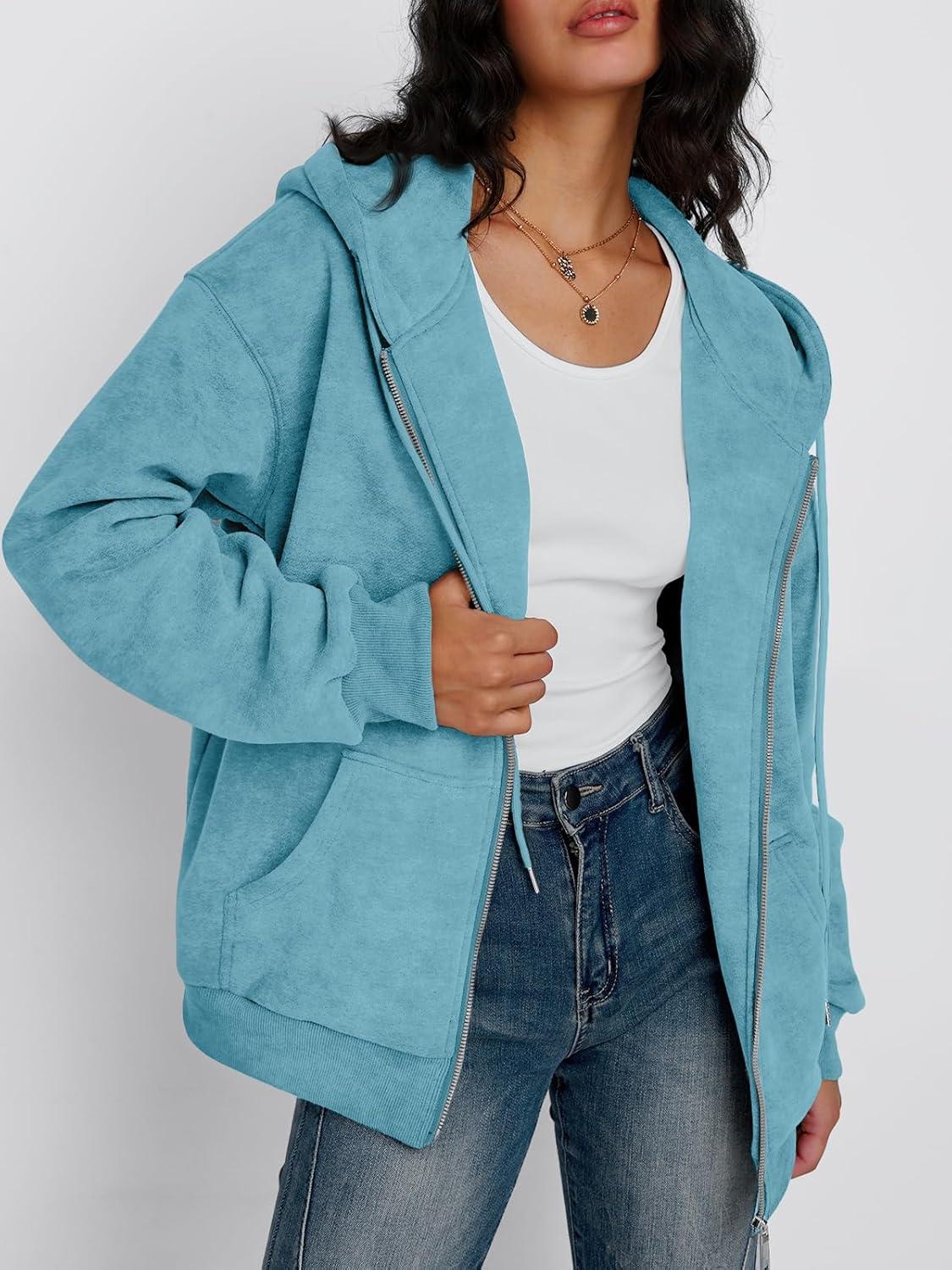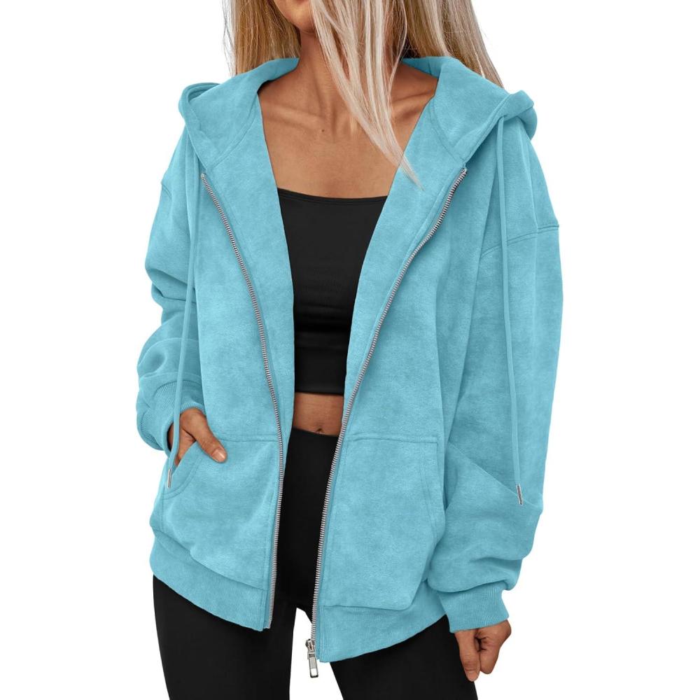 Trendy Queen Zip Up Hoodies for Women Acid Wash Oversized Sweatshirt Fall Fashion Jacket Cute Y2k Winter teen girls pullover(Skyblue)