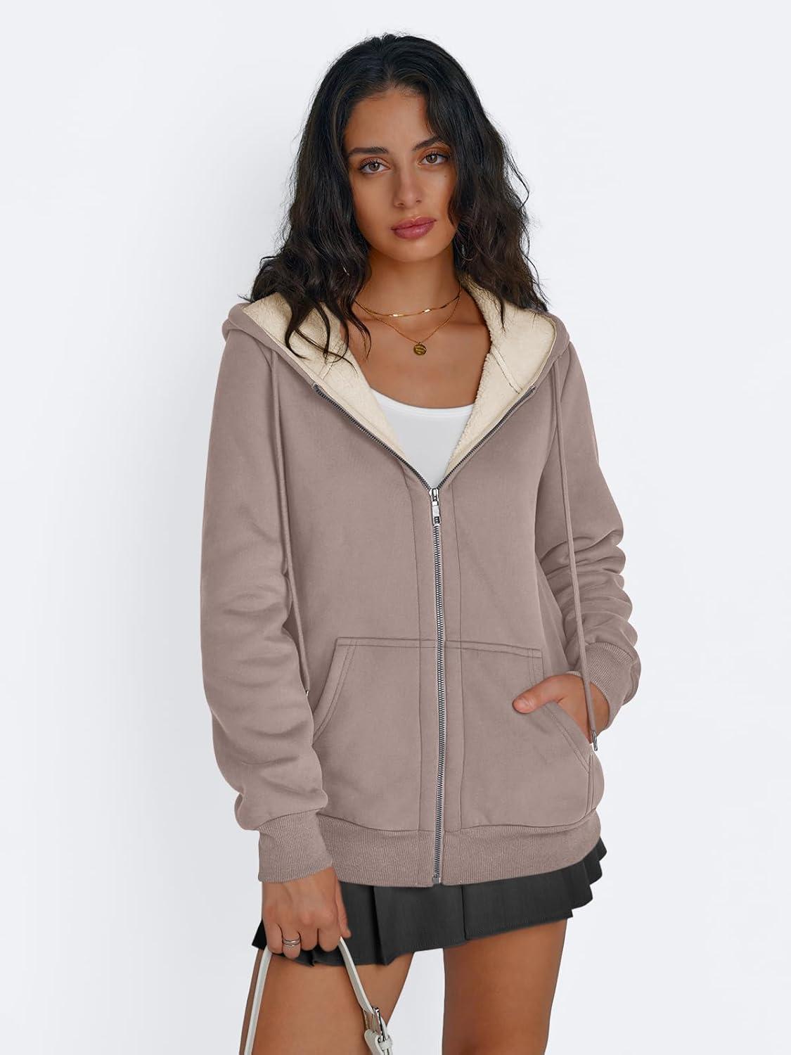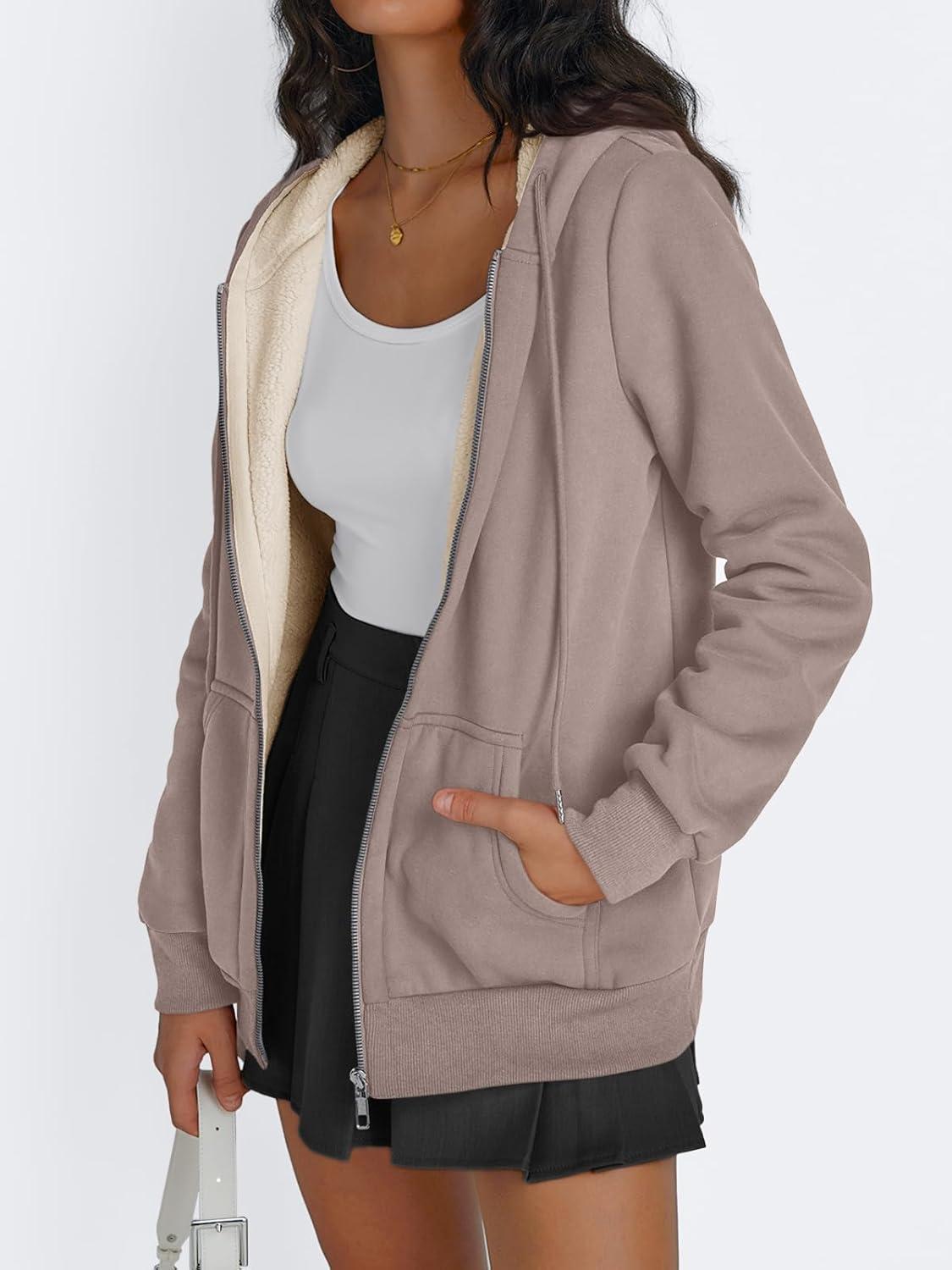 Women zip up jackets fleece coat casual heavyweight hoodies sweatshirt fashion warm winter clothes fall outfits long sleeve tops